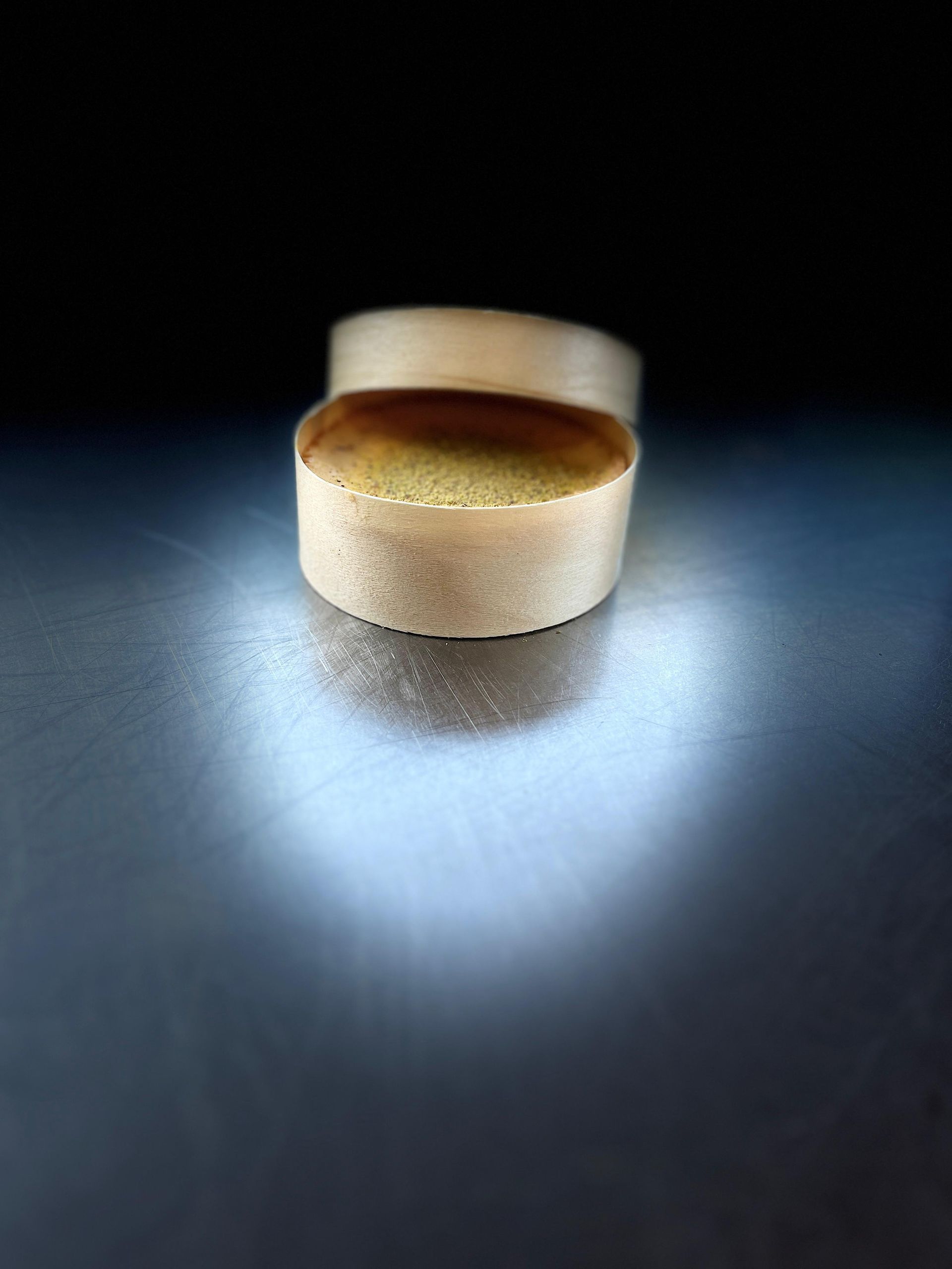 Queso crema, nata , huevos, azúcar, vainilla, pasta de pistachos 100%
